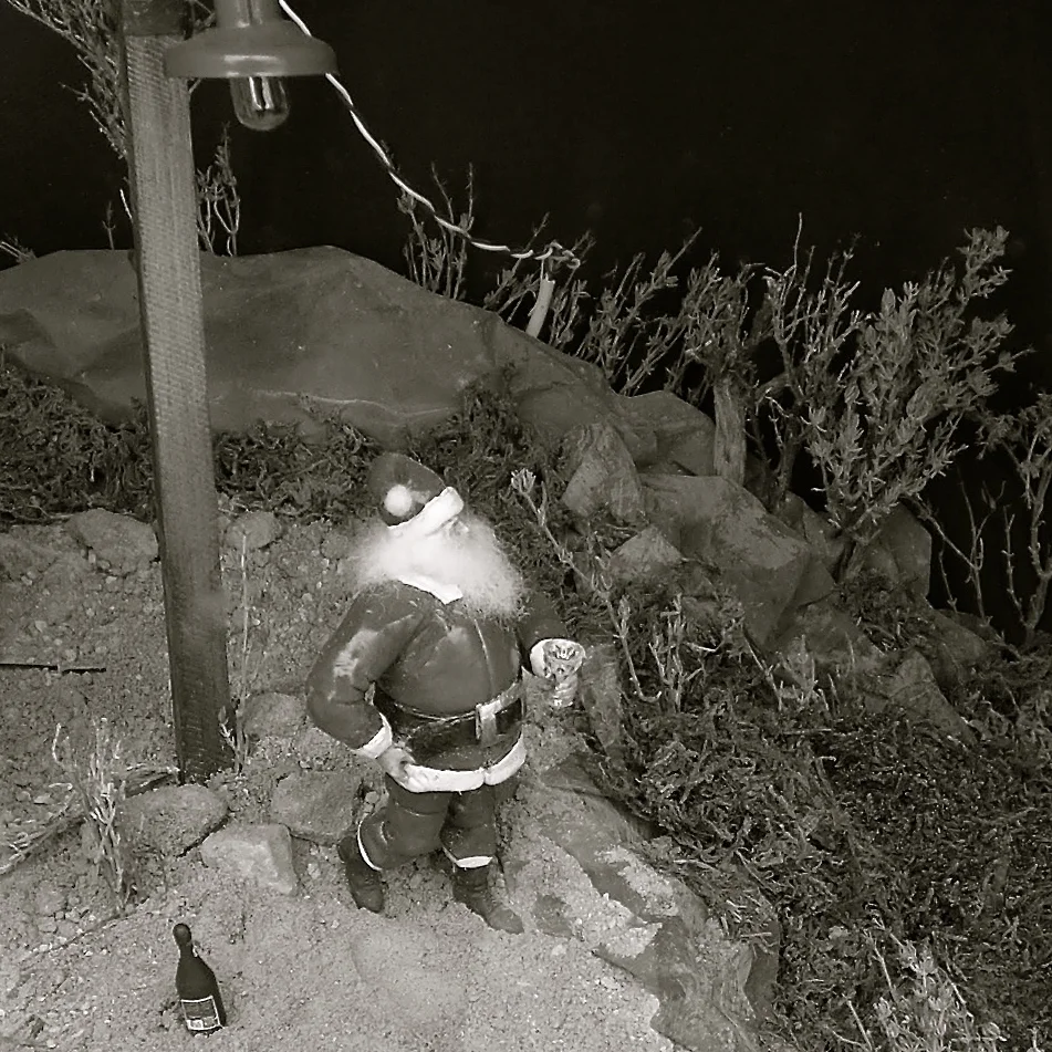 Belén fantástico, en el escaparate de Bar Bacharach. Obra de Clara Carnicer.