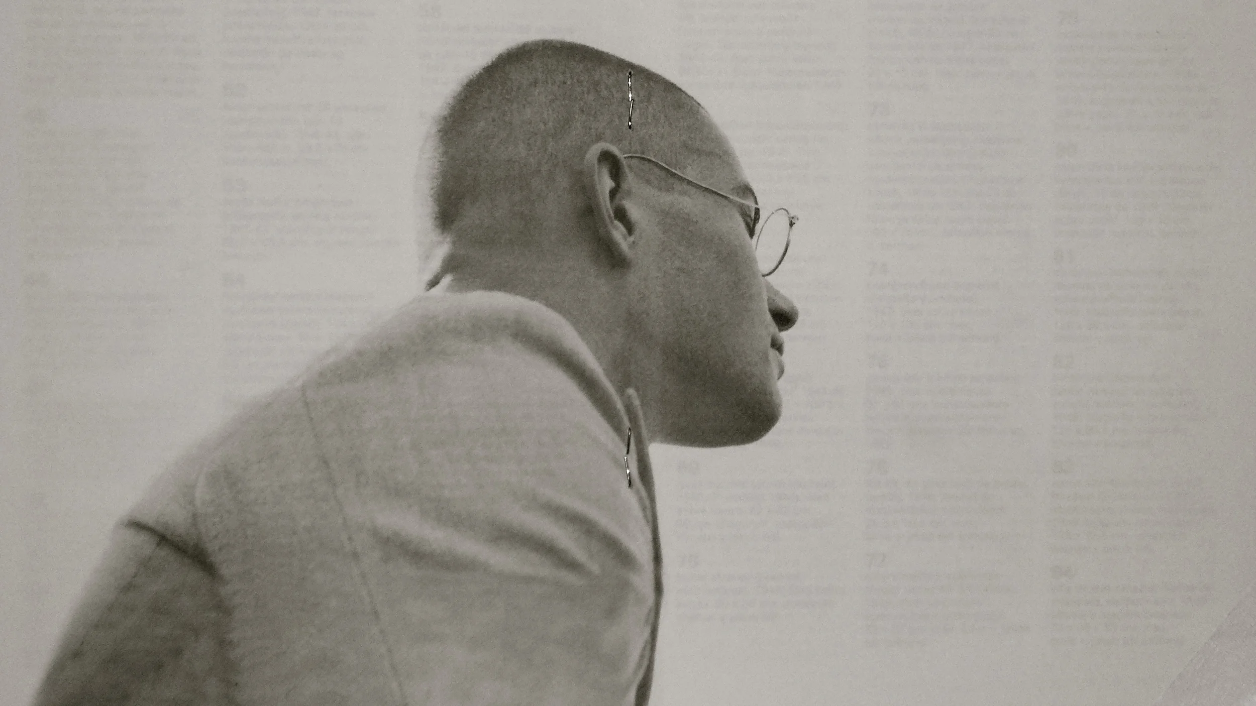 Foto de la foto de Max Bill realizada por Binia Bill. La foto de la foto es eso: una foto nueva que no pretende copiar el original sino mostrarlo con una visión nueva que no oculte su procedencia. Por ejemplo, esta foto tomada de las páginas centrales del folleto de la exposición dejan, deliberadamente, que se transparenten los textos del envés, así como las dos grapas de la encuadernación. Una foto de una foto es, siempre, un homenaje al autor original.