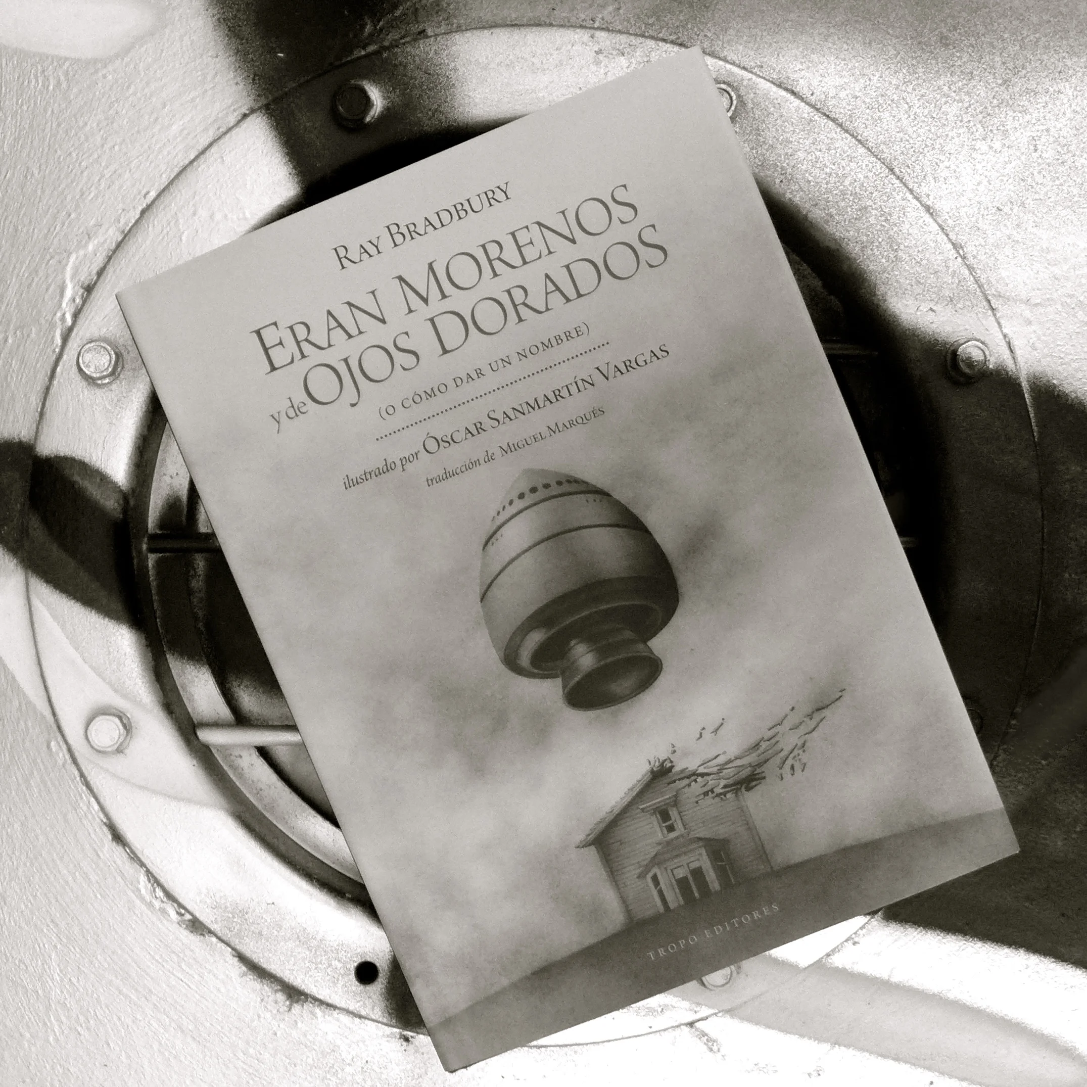 El libro de Tropo Ediciones, ingrávido, cerca de una escotilla de nuestra nave ("graffiteada por marcianos").