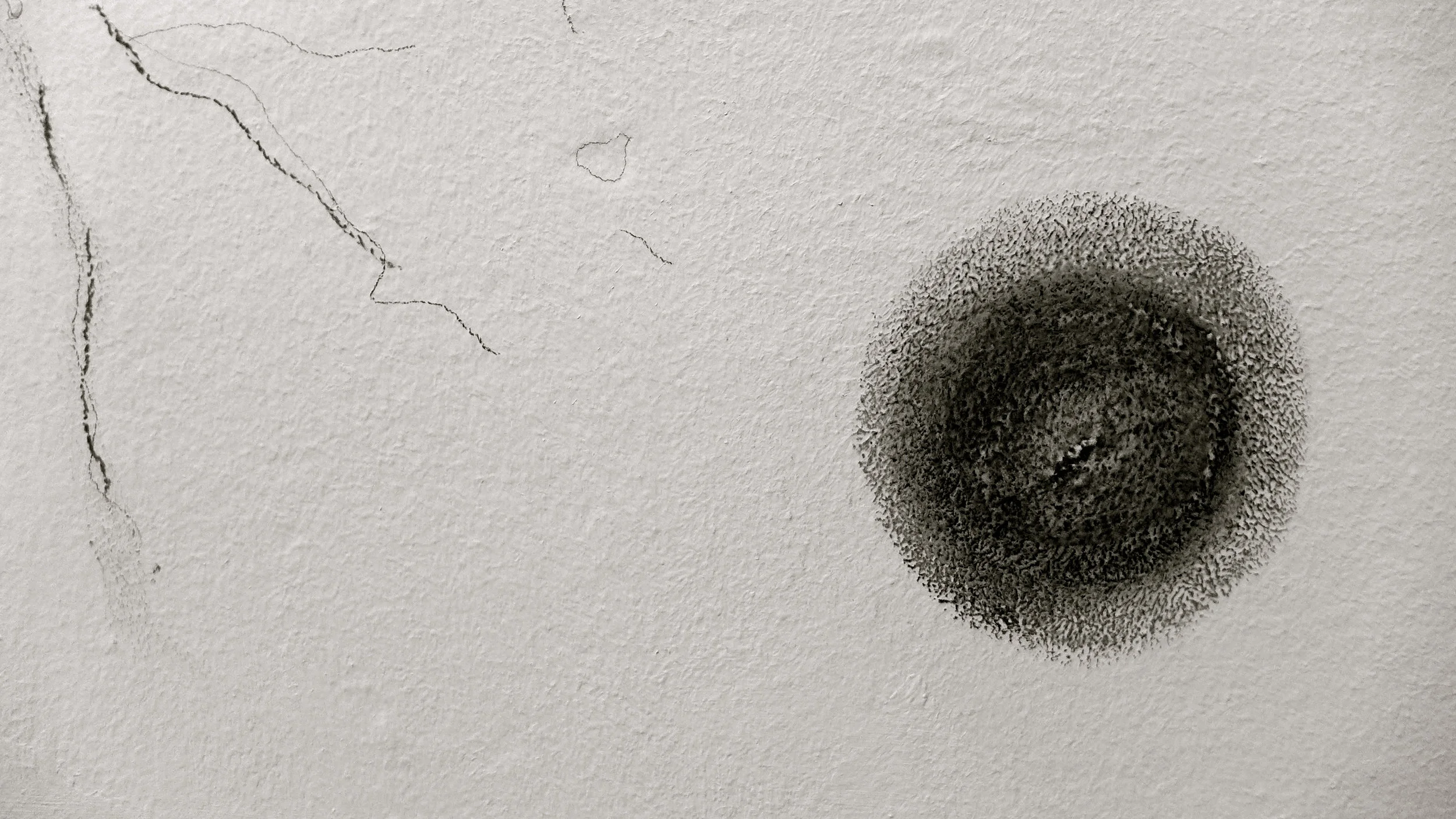 Alicia Vela ha tomado una curva, una hermosa curva en (el) Círculo de tiza, para hacer un grafiti en la pared. No ha utilizado el yeso. Sí el lápiz. Sugiere un mundo neural. Un entramado de axones y dendritas que, en un tramo de su recorrido, han capturado el título de la obra: Cuerpos que importan. ¿Un guiño a Judith Butle?